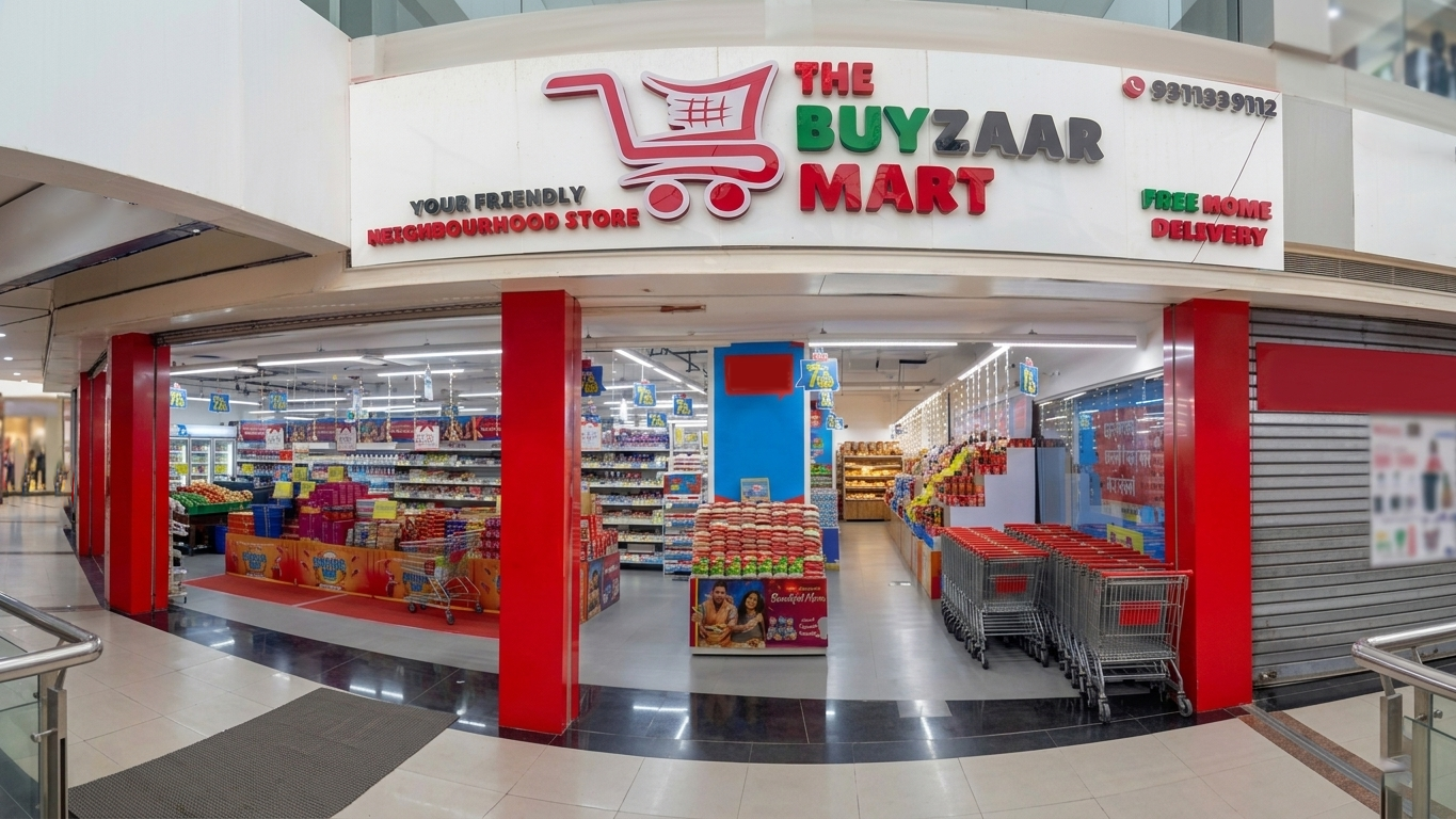 Grand storefront of The Buyzaar Mart, Sector 44 Chalera, Noida.